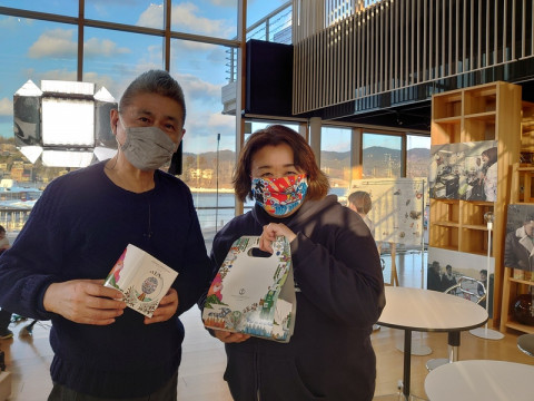 紀子さんが持っているのは、出来上がったばかりの新しいアンカーコーヒーさんのパッケージだそう。すごくかわいいです!