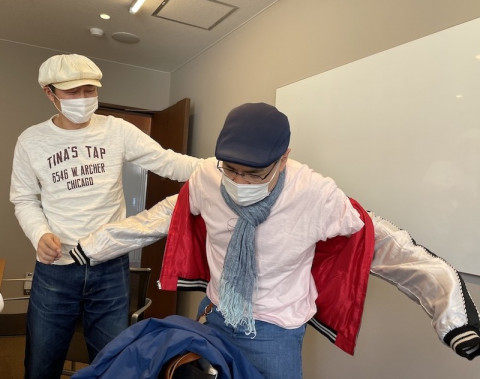 社内スカジャン試着会 あたたかくなってきたのでMOTHERのスカジャンを着てきた 「京都でMOTHERのことばとおみせ」でスカジャンの試着ができるという話から山下さんが試着をはじめます。 「ぼく、スカジャンって似合わないんだよ。 持ってないし。」 って言いながらも、永田さんに着せてもらうとうれしそう。 ひざたけどせいさんを抱っこしながら孫プレイを楽しんだり、真っ赤な色の面を着て、ン年後の赤いちゃんちゃんこのシミュレーションをしたり。 仲良しなふたりの撮影会がたのしそうで、その様子を写真に撮ってしまいました。 MOTHR2スーベニアジャケット(スカジャン)のほぼ日ストアでの注文受付は来週月曜日、3月22日午前11時までです。 うっかりしないようにしてくださいねー。 2021/03/15 14:56 |