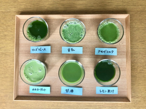 ハニーケールをさらにおいしく 畑deしぼりのハニーケールは、エグミや苦味が少ないといわれているのですが、ケールビギナーにとっては、なかなか飲みにくいという声も社内で耳にします‥‥。 ジュースをつくってもらっている ベルファームさんから 「ケールは他の飲み物で割ってみると、さらにおいしくなりますよ」 という情報を手に入れ、食品チームでいろいろな飲み物を加えて、実際に飲み比べてみました! ※ジュースと同量(100g)で割り、レモン果汁だけは小さじ1杯を加えてます。 「一番飲みやすいと思ったのはりんごジュースでした。 レモンを数滴加えるとさわやかさがプラスされておいしかったですよー!」 「おすすめはレモン果汁です! ケールの風味を感じつつ、レモンのさわやかさがあって、この組み合わせが一番好きでした。 栄養をしっかりとっている感じがします。」 「豆乳との組み合わせがまろやかなあじわいになって好きでした。 朝、パンを食べるときの飲み物としても相性がよさそうです。」 ケールのジュースをたまにはアレンジして飲みたい方、すこし飲みにくいと感じた方は、ぜひ参考にしてくださいね。 18日から再販売がはじまった まいあさのコップ付きセットはのこりわずかです。 気になっている方はぜひ今のうちに〜! 2021/03/23 16:52 |
