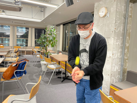 が手の平を使った空気砲で、ピンポン玉を飛ばしてくれた。