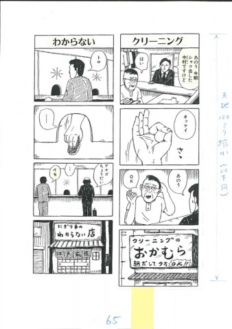 とは? 担当のいろいろに関しては、非常にねちっこく、こちらの「ただいま製作中」にてご紹介をしていくタイプでございます。 さて、主に西にお住まいのみなさまむけのお話ですが、今週の土曜日からTOBICHI京都で開催の 「好調!! 和田ラヂヲ展」です。 もう、ラヂヲ先生のお家の倉庫には、在庫は尽きていた 「入稿原稿」でございますが、このたびめでたく集英社のご担当の方が発掘くださったので、このたびまた販売ができることになりました。 はて? 入稿原稿? と思われている方に再び、 -----FAX漫画家として名高いラヂヲ先生は、直筆の原画を、松山のご自宅から東京の編集部へと、FAX送信していました。 受け側の編集部では、ジジジと出てきたFAX原稿に写植を貼って、それを「入稿原稿」としたのです。 こうして、一般の漫画家さんには存在しない 「原画のFAXに写植を貼った原稿」 が、ラヂヲ先生には存在するというわけです。 それをここでは「入稿原稿」と呼んでいます。 -----1枚目の写真でおわかりになりますでしょうか? この漫画部分は、FAXで送信されたもの。 そして、そこに写植(活字部分)が切り貼りされております。 ちなみに、前回、今はもう無き、墓場の裏のTOBICHIで販売したときに、激売れしてしまったので、今回は最初から購入枚数制限があります。 どうしても、たくさん欲しいという方は、毎回変装してきてください。 マスクは変装ではありません。 ハナ眼鏡、フック船長のアイパッチくらいは頼みます。 入稿原稿は、額装もおすすめです。 前回は、「ネーム」も販売されていたので、当方はそちらをいたしましたが、なんとなく、入稿原稿の場合もイマジン。 2021/04/07 11:43 |