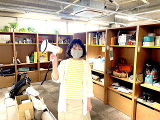 さんが拡声器を手にしてます。
