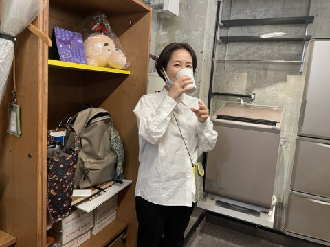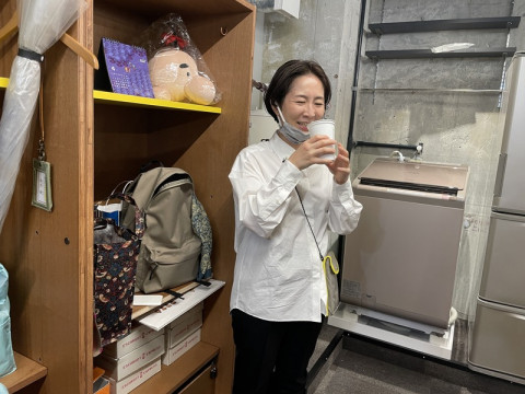 なんだ? 4Fのロッカーにおいてあるゲラをとりにいこうと、ロッカーの角を曲がったら、 人は、ロッカーでなにかを飲むことってある? あるかもしれないけど、なんかみたことなかったから、おもわず写真を取っておいた。 「このあと出るんですけど、半端な時間だから、まあ、ここで飲むかと思ったんです」 ということだった。 ジャンボはそういうところがある。 ここで飲んでるのはちょっと変かもしれないのはわかっているけど、まあうちの会社だからいいか (もっと変なことしてる人いるし)、と思っているはず。 2021/04/19 13:52 |