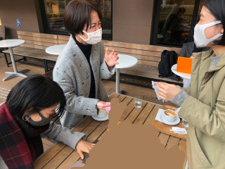 風に飛ばされそうになりながら あれは、まだ北風が吹いていて、コートが手放せなかったころ。 「つきのみせ。」チームは、新しいカラー展開について検討を重ねていたのでした。 写真1枚めは、デザイン監修をしてくださっている惠谷さんのアトリエからの帰り道、 「色は自然光で見るのがいちばん!」という考えからオープンテラスのカフェで生地見本をならべて考えているところ。 ときおり吹く北風に生地が飛ばされそうになりながらも、 「これってあの色みたいじゃない?!」とか 「うわわ、下着でこの色はすごくおしゃれ!!」とかワイワイ言いながら決めましたよ。 新カラーは、8月あたりにリリース予定ですので、どうぞお楽しみに! ちなみに、いま販売している、フルムーン以外のカラーは在庫限りとなります。 気になっていたかたは、いまのうちにご検討くださいね。 つきのみせ。 つきのブラ つきのショーツ 2021/05/07 18:44 |