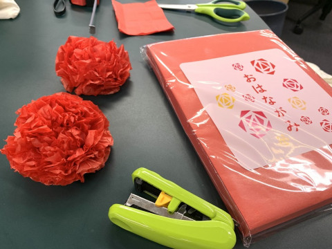 さんと一緒にラジオブースに行き、昔なつかし「おはながみ」をクシュクシュ。