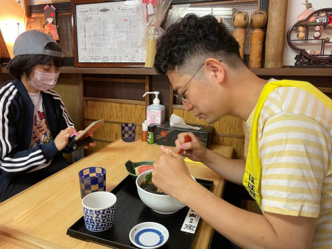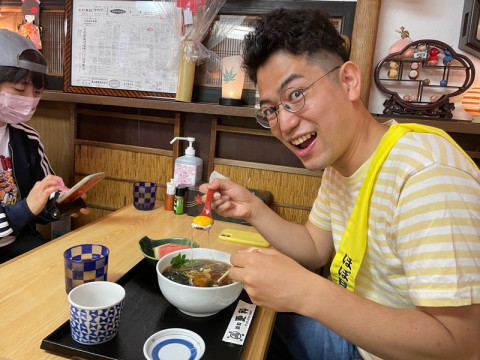 監督とミッドナイト。 「そば駅伝」走ってきました。 時間よりちょっと前に行ったら月見ランナーのミッドナイト(夜だけに)が爆走していました。 あっつあつのやつです。 シンプルなメニューは8分完食は余裕ですがゴージャス揚げ物系や冷めないカレー系はギリギリでフィニッシュかもしれないな…と思いました。 そして監督も一人分を8分で描写し次へ行かなくてはなりませんので、これまた一人で大勝負をしておいででした。 それぞれにがんばれ。 わたしは次は「土楽」の方の店番に出動。 2021/06/05 11:52 |