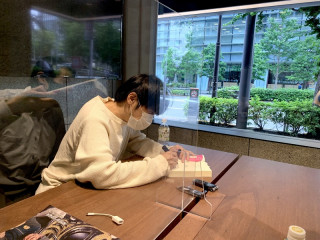 渡されたマッキーで、キュッキュッと丁寧に名前と日付を書く奥野さん。