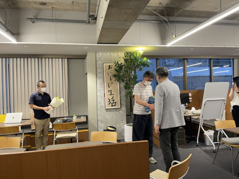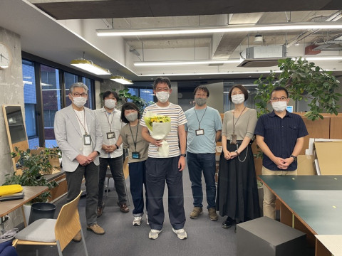 ありがとうございました! 今日は 10年前のこの日に入社以来、システム部でばりばりに存在感を放っていました。 今日は、最後の出社日。 さみしいです。 システム部部長の システム部の2人はこう言います。 「じゃぶさんは、システム部にチームという魂を注入してくれた人です。 技術的な好奇心と冒険心で、牽引してくれました」 「いつも新しい技術や考えをチームに持ってきてくれて。 表向きは、ちょっと抜けてる感じがあるけど(笑)、実はできる人、でした」 そして 待つ男とか、良かったなぁ。 エピソードに事欠かないじゃぶさん。 「いつもみんなのかわりに 濡れ衣をきてくれてありがとう。 一緒にヤギの鳴き声も録りに行ったねー」 と、思い出はつきません。 私は、よくじゃぶさんから 宇宙コーヒーのおすそわけをもらったことや、コロナ禍の前は、よく昼休みにボードゲームで一緒に遊んだことがいい思い出です。 そうそう、じゃぶさんのご実家から送ってくださる りんごも美味しかったなあ‥‥。 じゃぶさん、ありがとうございました。 また遊びにきてくださいねー! 2021/06/30 22:23 |