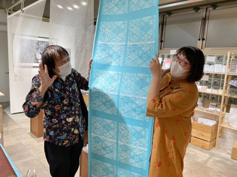 祖父江さんもびっくり! たのしく、びっくりの連続だった和紙トークを終えて、ブックデザイナーの祖父江慎さんと『デザインのひきだし』編集長の津田さんが TOBICHIに来てくださいました。 和紙でできた最新号の表紙のすごさをまじまじと見た後、今日のトークの主役だった世界一薄くて軽い 「土佐典具帖紙 ひだか和紙」でできたちぎり絵にまたびっくりされています。 この紙のすごさ、祖父江さんのこれからの「デザインのひきだし」に入ったかもしれません。 2021/07/28 21:11 |
