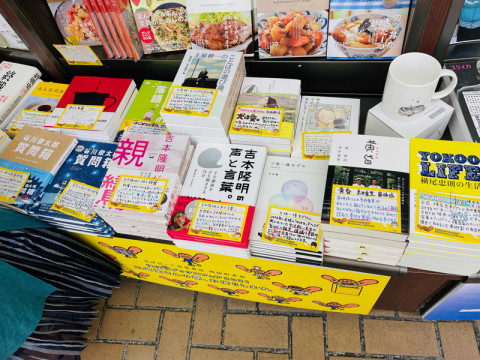 三省堂書店神保町本店で 私は今日、お昼ごはんを神保町のお粥のお店で食べました。 私は神保町周辺でごはんを食べた日にはどこかの本屋さんに寄って帰ることにしています。 本日は三省堂書店に行ってみました。 すると、入口すぐの棚になにかこう、すごく見慣れた文字が‥‥そうだ、自分だ。 自分の編集した本のPOPを書いたのだった。 手前にある『谷川俊太郎質問箱』の2冊、吉本隆明さんの2冊、そして右端の『YOKOO LIFE』に自分のくしゃくしゃした字がついていたので、恥ずかしくもうれしかったです。 ほかの乗組員のPOPも読み込んでしまった。 本の並べ方も、さすが、手にする方の心の動きに沿うものになっていて、『黄昏』と『YOKOO LIFE』を隣にするあたり、三省堂書店さん、わかっていらっしゃる! フェア期間中、神保町にお越しの際はぜひ、三省堂書店1階右手の棚を見てみてください。 2021/08/16 18:38 |