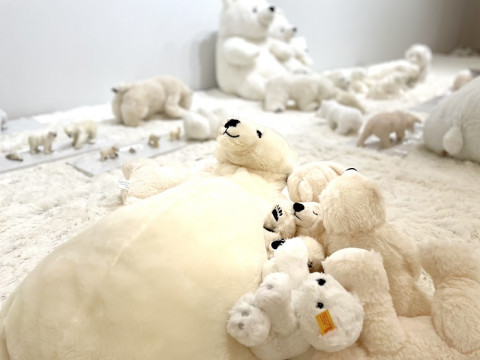 シロクマだらけで、準備中! 明日から渋谷PARCO8Fの「ほぼ日曜日」ではじまる「シロクマだらけ展」の設営中です。 まだまだ道半ばですが、あふれるかわいさに、もだえてます。 なんど「かわいぃぃぃぃぃーー」と言っていることか。 そして、スタッフ内ではただいま塩川いづみさんのイラストがのった2種類のTシャツのどちらを着るか意見がわかれてます。 いや、もう、両方でしょう! どちらもかわいくて、選べなかったから両方つくったのですし! 会場におこしいただけないみなさま、明日8月27日(金)午前11時からは ほぼ日曜日のWEBショップで塩川いづみさんのTシャツ、Kanocoさんの『かの・この・はなし』(特典付き)、特製のカンバッヂセットなどをお求めいただけます。 (現在まだ商品が掲載されていませんが 明日の午前11時にあらわれます) そして会場におこしいただく予定のみなさま、混雑時は入場整理券を配布する可能性があります。 ほぼ日曜日のツイッターで会場の状況をご覧になって、お越しくださいね。 たったいま、会場内で歓声があがりました。 秋田の男鹿水族館さんからお借りしたシロクマの映像が壁に映し出されたようです。 この迫力も、ぜひご覧いただきたい。 かわいさが止まらないシロクマだらけ展です! 2021/08/26 11:32 |