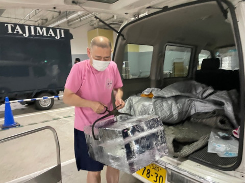 内神田の氷屋さん、旭氷業さんに、12貫サイズを2本届けていただきました。