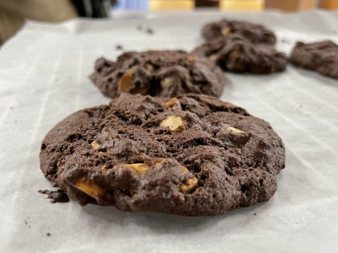 傑作レシピじゃなかろうか。 さて、しつこく投稿するわけです。 現在、少々、お安くなって販売中の 「おやつミックス」と 「チョコおやつミックス」ですが、あらためて、このミックス粉で作れるおやつのレシピを振り返って作り中。 せっかくまとめたページをつくったのだから、じゃんじゃん利用していただきたいのです。 (あ、ほぼ日ストアでは、9月12日までの販売になりまして、その後しばらく在庫切れしますので、どうか、みなさまストックを! なにせ、賞味期限がせまっていますが、全箱、みなさんのお腹におさまってほしいのです!) 先週2つつくったのですが、そのうちの一つが、 「チョコとマカダミアナッツのカントリークッキー」です。 これ、つくると2回びっくりできます。 最初に 「これ、まぜるだけじゃん!」で一回。 そして、焼き上がったときに 「これ、まぜただけなのに! じゃん!」 で、もう一回。 コツは一つだけ。 焼いているうちに、クッキーが広がるタイプなので、くっつけて起きすぎると、でっかいクッキーができてしまう、ということだけです。 でかクッキーもおもしろいのでそれはそれでいいかも。 いやあ、おうちに、オーブンレンジがあるならば、騙されたと思って作って欲しいやつです。 ちなみにですね、きび砂糖と無塩バターは無かったので、ふつうの砂糖と家にあるバターですよ。 もちろん、レシピ通りで、となかしまさんもおっしゃるのですが、代替品については、ためしてみて自分がおいしいとおもえばそれでいい、ということですので、その言葉を忠実に守っています。 マカダミアナッツも無いときがあるので、今度はアーモンドとかでやってみようと思っています。 それにしても、この神田のキッチンのオーブンはすごい。 いにしえより刷り込まれた 「ドイツ製はすごい」煙幕を投げつけられているのかもしれませんが、なにかしら? このオーブンは! 現状、弊社スーパー宝の持ち腐れよ! 七面鳥の丸焼きとか誰か焼いてほしい! はやいとこ、みんなでおいしいものがつまめる世の中を(祈)。 2021/09/06 12:28 |