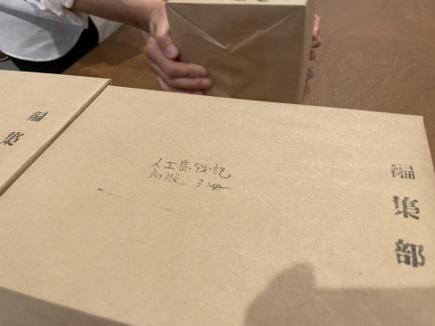 完結。 そして、ポートビル3Fに到着いたしました。 なぜ、発送用の倉庫じゃなくて、ポートビルに納品なのかといえば、特典をここでくっつけて梱包をする必要があるからでございます。 それにしても、一包3冊ですか。 通常だと、1包10冊くらい包まれているものですが。 初めてみました、3冊包み。 ホーム社のみなさん、どうもありがとうございました〜! がんばって売ります〜〜。 発売開始は、ほぼ日ストアで22日。 TOBICHIで23日です。 こんな家にいる日々もあまりないので、1404ページの旅にでてみませんか? 行ったことのあるような、もしかしたら自分の故郷のようなある都市の物語です。 2021/09/15 14:26 |