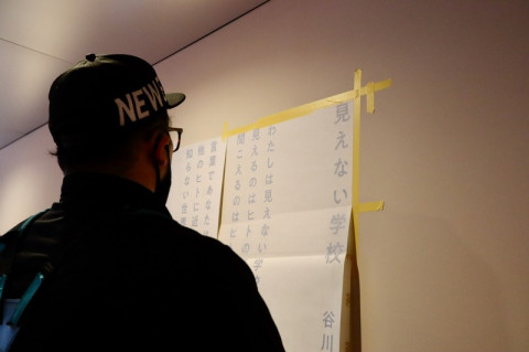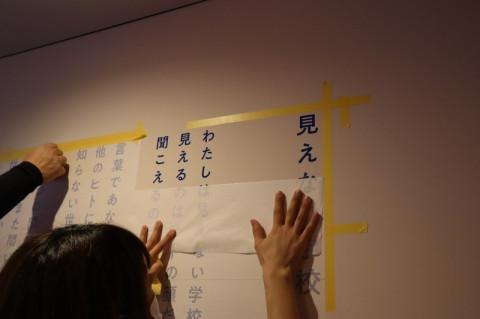 ゆっくりとカバーシートをはがしていくと鮮やかに谷川俊太郎さんのことばが現れました。