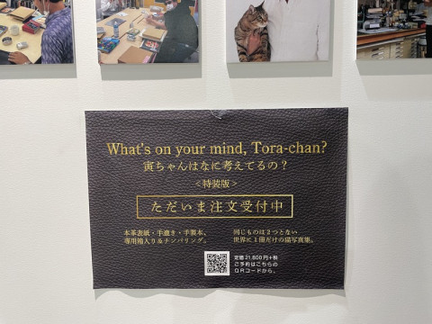 浅生鴨さん。 きのう、TOBICHIの 浅生鴨さんが店番していました。 わわわ。 どうしたんですか? ときいたら、ご自身の出版社ネコノスから出版される写真集『What's on your mind, Tora-chan? (寅ちゃんはなにかんがえてるの?)』の行商にきているとのこと。 大阪で革製品のお店をされている前田将多さんの家にいるトラ猫の寅次郎がツイッターでつぶやいた言葉と寅次郎の写真で構成された本。 表紙は本皮‥‥デザインは1ページ毎に違う‥‥手で製本しなくちゃいけない構造‥‥専用の箱もある‥‥ということで、なかなかのお値段! だったら、直接手にとって見てみてほしい! ということで、受注会中です。 鴨さん、連休中、出たり入ったりもあるけれど基本的にはTOBICHI東京の店舗におられます。 注文がてら、鴨さんとおしゃべりにいってみてくださいませ〜! 2021/09/18 11:17 |