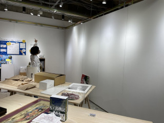 仕切りもせずに、開放的に設営中ですので、展示は明日からですが、フライング鑑賞も可能です。
