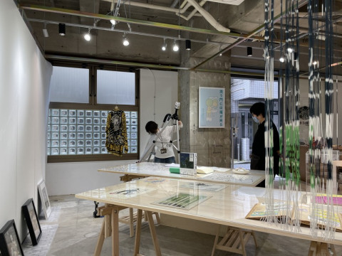 「でっかい本の刊行を記念してちいさな『橋本治展』」の設営中です。