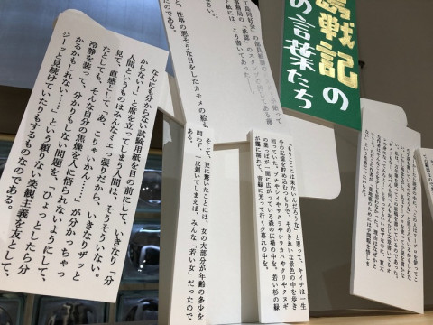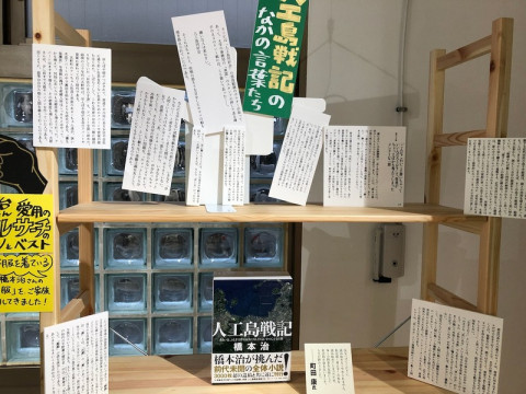TOBICHIの「ちいさな橋本治展」は明日まで 「大きな作家」橋本治さんの言葉や作品に囲まれて幸せな時間を過ごしてきましたが、いよいよ明日水曜日が最終日です。 期間中、 私たちも楽しみながら読み進めている『人工島戦記』には、味わい深い言葉が満ちあふれています。 橋本治さんの超絶技巧の切り絵やイラストもお楽しみいただけるのですが、この抜き書きだけでも、十分楽しんでいただけるのではないかと思います。 そして、手前味噌ですが、スタッフ手作りの「ぼけ餅本舗」 (小説に出てくる架空の和菓子屋)のニセ広告と粘土でつくった 「なんちゃって ぼけ餅」。 どうぞ笑いに来てください。 2021/09/28 16:32 |