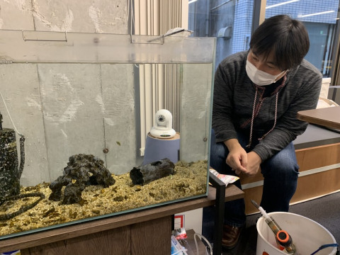 フグの事情 すこし前、2Fに行くと、 「今日もフグは。」担当の 「片方のフグさんが、 餌を食べてくれないんですよ」 とのこと。 あたらしく迎えた2匹の食べっぷりに、大きな差があるそうです。 高級なごはんでないと満足できない、相当グルメなフグさんなのか? はたまた同居人に餌をゆずってしまうような、遠慮深い性格なのか? いや、それとも、何か訴えたいことがあって、断食中‥‥? のんきにスイスイ泳いでるように見えるけど、フグはフグなりに、いろいろあるのかも。 とりあえず、別々に餌をあげるそうです。 2021/10/08 17:19 |