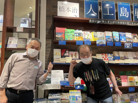 フェニックスブックスフェアと。 今日、ほぼ日のご近所の神保町の「東京堂」に 凄腕の販売員、河合さんにお会いするためです。 なんと、河合さん、10月29日〜31日に神田ポートビルで開催する本のイベント 「フェニックスブックスフェア」にお手伝いとしてきてくださると! (あ、「フェニックスブックスフェア」については詳細は、19日にアップしますが、とりあえずは、こちらにかんたんな情報が。) 書籍をバリバリと販売してくれるそうです。 折しも、東京堂さんでは、橋本治さんの新刊 『人工島戦記』のフェアが始まったばかりです。 本好きの二人が、橋本治さんの本について語り始める前に撮影、撮影。 で、この『人工島戦記』ですが、さきほど、ほぼ日ストアでの販売は終了しました。 再入荷はありません。 ただ、この 「フェニックスブックスフェア」で、最後の最後の特典つけての販売をする予定です。 こちらも決まり次第、お知らせしますね〜〜! 2021/10/15 18:02 |