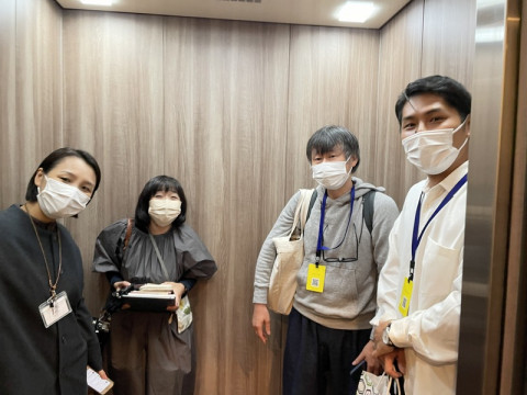 ファミリーたち。 入り口で、Bamboo cutの順平くんと会ったのでおしゃべりしてたら、 「こっちに福田さん、いらっしゃってるよー!」 という このふたりに同時に会えるなんてなんだかうれしいなぁ。 ほっとするファミリー感。 1フロア上に階段で行くつもりでしたが、せっかくなので、エレベーターに乗って、一瞬のおしゃべりをたのしみました。 あ、福田さんは展覧会があるんですね。 11月26日、いい風呂の日からだそうです。 行かねば。 おふたり、また来てくださいねー! 2021/10/26 11:36 |