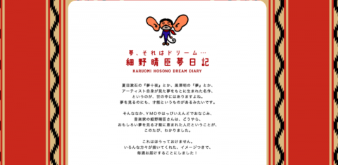 夢を見た・・・ではじまる、あの連載 2006年から2007年にかけて、ほぼ日には 「夢、それはドリーム・・・細野晴臣夢日記」 という連載がありました。 「夢を見た・・・」の書き出しではじまる連載を、私も毎回とてもたのしみにしていました。 この連載が、長い年月をかけ、細野晴臣さんご自身の強いご希望もあって、一冊の本になることが決定しました。 発売は来年の3月18日なのですが、本日よりAmazonで予約がはじまっています。 予約特典は 「細野晴臣 夢十夜」オリジナル・ステッカーだそうです。 ※予定数量に達し次第終了となります。 ほぼ日で連載されていた夢日記全37話が収録されるほか、朝吹真理子さん、リリー・フランキーさん、ナイツの塙宣之さんの3人による、夢10篇をもとにした短編小説が読めるという、とても豪華な本です。 ステッカーつきで入手したい方は、ぜひご予約を! 2021/11/10 16:45 |