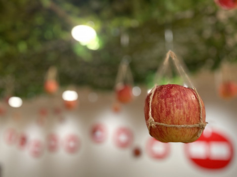 赤いものを身につけて。 用事があって、渋谷に出向いたので寄ってきました、りんご狩りかもしれない展! どうやら乗組員たちもたのしみにきているようです。 ウィリアム・テル・フォトスポットを満喫したんですね。 わたしは赤いバンダナをおしゃれに巻いた お気づきかもしれませんがこの展示、スタッフもお客さんもなんだか赤いものを身につけたくなるようです。 ほら、この前も! わたしも、赤い靴下をはいて、たのしくりんご狩りしてきました。 大きくてつやつやのりんご、いただきまーす。 2021/11/21 16:16 |