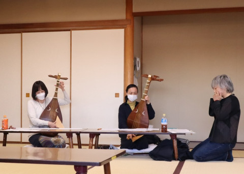 +作家の演出 琵琶の響きってすごい! 俳優さんの朗読ってすごい! そしてやっぱり古川日出男さん現代語訳の『平家物語』ってすごい! それを実感しました。 琵琶奏者の川嶋信子さんにお誘いいただき、琵琶の二重奏と朗読で古川日出男さんの『平家物語』に浸る 「平家 閃々と〜平家は散り琵琶は咲く〜」 の、お稽古をのぞいてきました。 この日は演出も担当する古川日出男さんが初参加。 朗読を担当する俳優の南谷朝子さんと登場人物の読み分けや衣装のことなど打ち合わせを進めていらっしゃいました。 シェイクスピア講座で披露してくださった古川さんの朗読も見事ですが、南谷さんの朗読はそれとはまた違った味わいで、物語の世界が広がります。 南谷さんはこう語ります。 「古川さんの現代語訳はリズムがあるのでそれを意識して読んでいます。 朗読する体は媒介だと思っているので、この作品を読んでいったい何人くらいが自分の体に入ってくるのか楽しみです」 練習とはいいながら、南谷さんが口にする 「水」(物語の主題です) 「無情」といった言葉の豊穣なこと! 琵琶奏者と作曲家との打ち合わせでは、古川さんから、 「『祇園精舎の鐘の声』の鐘はどんな音だと思いますか? ゴーンじゃないんですよ。 ガラスの鐘。高い音なんです」と、平家物語の世界と向き合いつづけた作家ならではの指摘があり、一同「ほぉ〜〜〜〜〜!」と感嘆する一幕もありました。 古川さんご自身は、この公演のテーマを 「伝統芸能をやりながら、現代とどう接続するか。そして、小説家としてどうやるか」と設定していらっしゃるそうです。 興味が尽きません。 骨太な「古川平家」に寄り添う川嶋さんと久保田晶子さんの琵琶の音も繊細にして骨太です。 穏やかな海と怒涛を雄弁に表現する響きに言葉を失いました。 本公演は12月9日(木) 紀尾井小ホールにて。 これから本番までの間に演奏にも演出にもいっそうの磨きがかかることでしょう。 1000年以上の歴史を持つ楽器と現代の言葉が絡み合う『平家物語』。 必聴です。 2021/11/25 20:30 |
