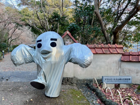 京都で「みうらじゅん」展 みなさ〜ん。 ほぼ日見習い乗組員の いまシジュは、京都に来ているんだジュ。 なぜって、京都の アサヒビール大山崎山荘美術館で 「みうらじゅん マイ遺品展」を開催しているからなんだジュ。 みうらさんのスクラップ帳の中身を見られる貴重なお部屋があるんだジュが、そこになんと、シジュの写真も展示されているという噂を聞きつけたんだジュよ〜。 うれしくて美術館でみうらさんの顔をした 「飛び出し坊や」などを見つけつつ遊んでいたら、みうらさんに誘ってもらって、トークイベントでご挨拶させてもらったりしたんだジュ。 とってもたのしかっただジュ。 みうらじゅんさんは京都出身。 「故郷に錦は飾れなくても、ゴムヘビは飾ったよ!」 とおっしゃっていただジュ。 展覧会は3月6日まで開催しているから、春までに京都に見に行ってね! 2021/12/19 15:57 |