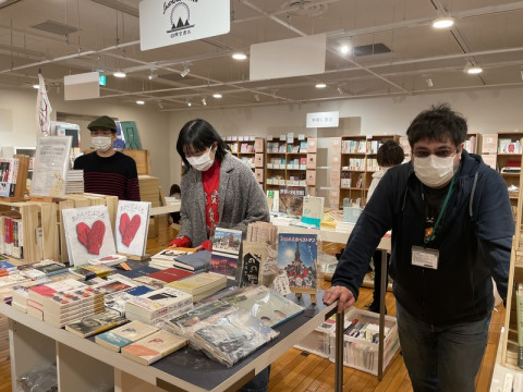 渋谷パルコ8Fで! 「本屋さん、あつまる。」 設営も終盤でございます。 ただいま、1200冊のデータ、バーコードと対応しているかを確認中。 これをしておかないと、明日からの現場大混乱ですから‥‥。 あ、台湾の本を扱う太台本屋のお二人! そして、大・お店番の作家の浅生鴨さんもセッティングに来られました。 そして、ブックデザイナーの名久井直子さんも、 「本棚に書店」のいち員として、様子をみにきてくださったのでした。 いやはや、明日からのイベントとても楽しみですー。 2022/01/20 20:45 |