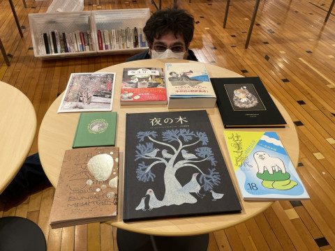 鴨さんの買い物。 「本屋さん、あつまる。」の会場に仕事場を広げて、全部のお店の店番を担当している作家の浅生鴨さん。 あ、小説を書いていますが、はなしかけてもオッケーだそうですよ。 きのう、散財があぶないということで、所属事務所の社長さんにコーポレートカードを召し上げられていましたが、自分のカードはポケットにある、ということで、購入した本をテーブルに広げてもらいました。 さらに、筑摩書房の編集者の鶴見さんも来られたので、買った本を紹介してもらいました。 最後に私が『夜の木』をおすすめしたら、これも購入! やた! インドで手漉きの紙に手作業のシルクスクリーン印刷、手製本で作られている本。 「デザインのひきだし」の津田淳子さんの選書でした。 印刷の黒ではなくて、黒い紙をつかった絵本。 まっっっくろな紙に美しい木の絵。 つくづく、素敵な本だなあ。 (すでに、弊イベントの在庫希少です) 2022/01/22 11:33 |