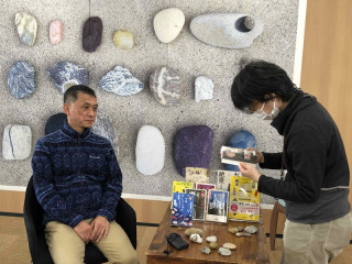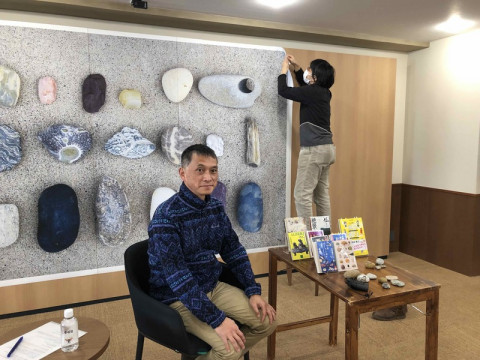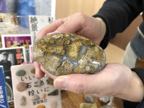 石ころだけじゃないんですが エッセイスト宮田珠己さんのほぼ日の學校の授業を収録しました。 石ころ持参でミーティングをしたり、 冬の海辺に石ころを拾いに行ったりしていたので 社内ではすっかり、 「あー、あの石ころの授業?」と言われていますが、石ころ拾いだけじゃありません。 自分だけの "いい感じ" のアンテナをたよりに、自由気ままに、日本も世界もたのしみ歩くエッセイスト、宮田さんに 「自分だけのいい感じ」の探し方について伺います。 背景に貼ってあるのは、 きれいだし、おもしろいし、宇宙すら感じる! と、 あ、いえ、石ころだけの授業ではないのです。 会社員だった宮田さんが、どうやって今の、中毒性のある、肩の力の抜けた独特でユーモラスな旅行記を書くに至ったのか... でもほら、見てください! 磨いたらつるっつるになったという石。 光沢、伝わるでしょうか。すごいです。 そして、海岸に落ちる滝のように見える石。 滝壺の飛沫が見えるようではないでしょうか! 「この石も、いいですよねえ...」と 『いい感じの石ころを拾いに』をめくったりと授業前から、ひと盛り上がり。 いえ、石だけの話ではないのですが、つい... 海のおもしろい生き物をめぐる旅とか、 日本各地の巨大仏をめぐる旅とか、 道端のゆるい神さまをめぐる旅とか、いろいろたっぷり、伺いました。 授業の公開はもう少し先になりますが、どうぞおたのしみに! ★宮田さんはちょうど今月から、 「宮田珠己のいい感じの石ころを拾いに」というYoutubeチャンネルをはじめられたそうです。 第一弾は、多摩川での石ころ拾い。 宮田さんの愛する海辺での石拾いとはちょっと勝手が違うようですが...? もうひとつの宮田ワールドも、よろしければ。 2022/02/18 14:30 |