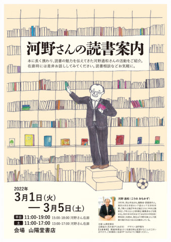 お向かいさん。 先日、渋谷PARCOで開催された 「本屋さん、あつまる。」で、河野さんの「河野書店」と表参道の書店「山陽堂」さんは、向い合せでブースが出ていました。 そんなこんななのか、昔からのお付き合いなのか、3月1日から5日まで河野さんのイベントが、山陽堂書店のギャラリーであります、と、河野さん、山陽堂さんからご案内をいただきました。 読書案内のメルマガやラジオ出演を長くされている河野さんの活動の紹介、読書相談(在廊して相談を受け付ける)、あとは、河野さんの蔵書の販売などもあるそうです。 河野さん曰く 「つまりは、古書販売です」と。 リストを見せてもらったら、なかなかでした。 狙うべき本が数冊ありました。 価格が破格! 初日に行かなくちゃかなあ。 ちなみに、河野さんは、買い求めたどんな書籍にも、きちんとトレペでカバーをされているので、本の状態がすばらしく良い、というのもお知らせしておきます。 よかったら、表参道の山陽堂さんまでぜひ! 2022/02/24 15:26 |