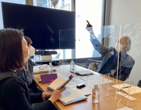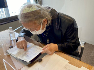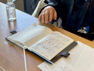 石川九楊さんとの打ち合わせ 書家の石川九楊さんが、ほぼ日まで足を運んでくださいました。 今回は九楊先生から 「ほぼ日とこんなことができたら」 というお考えをうかがいました。 予想もしていないような内容でした。 とても光栄なことですが、おちつきません。 ちなみに九楊先生は普段からほぼ日手帳の「カズン」をお使いです。 以前も取材させていただきましたがいちばん活用されているのは年間スケジュール。 書の展覧会を年に数回行うため、自然と何年か先の予定まで埋まります。 このカレンダーで予定を管理すれば一目で忙しさがわかるとのことです。 「このカレンダーがもう少し大きくなって、1ページごとにあと数年あればいいのに。 こんなに小さく書かないといかん」 とおっしゃっていました。 お寺に行く用事のところに小さな文字で「卍」と書かれていました。 次にお目にかかる際には 「おおきいほぼ日5年手帳」をご提案してみたいと思っています。 年単位で生きている九楊先生には5年分のカレンダーと相性がよさそうです。 2022/03/25 16:07 |