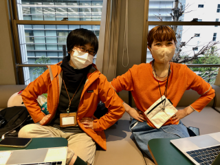 が、ほぼ同じトーンのオレンジに身を固めていました。