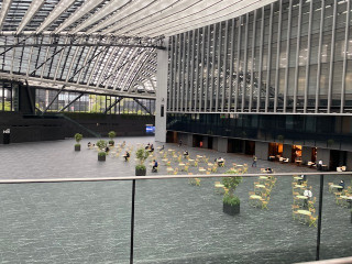 三角広場、でっかい! 出勤途中にふと思い立って、次の「生活のたのしみ展」会場の新宿住友ビル、三角広場へ行ってみました。 (降りた駅は丸の内線西新宿駅です。 けっこうすぐ行けました) ‥‥と、三角広場、でっかい!!! 天井もものすごく高いです。 ちょっと高いところに全体を見渡せる場所があって、この場所にぎっしりにぎやかなブースが並ぶと思うと、ドキドキしてきました。 写真だとやや大きめサイズくらいに見えるスクリーンも、現場で見ると笑っちゃうくらい大きいです。 たくさんならんでる黄色いものが、椅子と机。 ミニフィギュアのように見えるのが、人。 片目を瞑って見ると、ちょっと想像しやすいかもしれません。 イベントインフォメーションにたのしみ展のチラシもありました。 その前の週にはdancyuさんのイベントもあるようです。 こうやって現地にいくと現実感がどんどん増してきます。 自分に割り振られた仕事もどんどん準備していかなくちゃ。 がんばるぞー。 2022/04/14 11:41 |