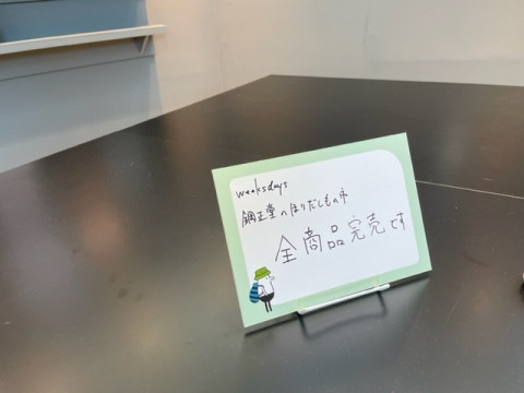 えっ、もう5日目!? 明日までです、明日までなんです。 「生活のたのしみ展2022」の5日目を迎えました。 今日は祝日ということで、オープン前から長い行列ができました。 目的の商品は見つかったでしょうか。 もうすでに「全商品完売」というお店も出ているようです。 完売情報はこちらからお確かめください。 今日は13時から 「だいどこ道具ツチキリライブ実演販売」、15時と16時には 「現代サーカスユニット・ホワイトアスパラガス公演」 を予定しています。 なんでも広場の会場が突然サーカスになっちゃうんです。 立ち見でもご覧いただけますので、ご来場のかたはたのしみにしていてくださいね。 ぼくは家の都合で期間中は留守番をしているのですが、乗組員のみんなも、立ち仕事にもすっかり慣れたのではないでしょうか。 それとも、もうクタクタ? 明日まで、明日までなのでがんばれー! 2022/05/03 12:48 |
