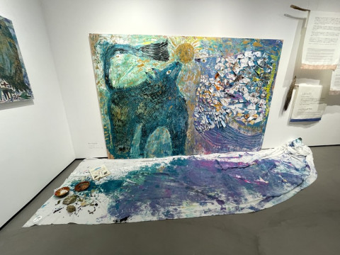 銀座でミロコマチコさん! ほぼ日カルチャんがリニューアルを控えて休止中なのですが、おすすめの展示があるのでここで「ミニ・カルチャん」をさせてください。 銀座のクリエイションギャラリーG8の ミロコマチコ展「うみまとう」に行ってきました。 ミロコさんが東京から奄美大島に拠点を移してからつくられた作品たちが、わたしは本当に好きで‥‥。 2020年に宇都宮美術館で観たときにはその前から動けなくなるほどで、まさに「虜」なのです。 銀座で観られるのは、新作や、奄美の森の中で絵を描いている映像など。 私は会期の最初に行ったので、ライブペインティングが途中だったのですが(写真3枚目)、今はこんなふうに完成しています。(4枚目) パワーが‥‥すごい‥‥!! 展示は5月23日までです。 ちなみに、そのあいだの5月13〜18日には、神宮前のHBギャラリーでも ミロコマチコ個展「波めくり」 が開催されるそうです。 ハッピーミロコマチコさんウィーク、です! 2022/05/09 14:23 |