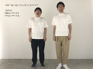 〈O2〉Tee "Lily"のワイドT 今日は早くも梅雨の気配がする、静かな雨が降っている東京です。 梅雨が通りすぎたら、もうそこは夏‥‥! 夏といえば、そう、Tシャツの季節です。 〈O2〉のあたらしいTシャツ 「Lily(リリー)」は、なめらかな肌触りでご好評をいただいた 「ロータス」シリーズを進化させたもの。 ほおずりしたくなるほどスベスベで、上品な光沢があって、しかも透けにくい。 ふつうのTシャツとはちがう、独特の存在感があります。 (くわしい読み物はこちらからどうぞ) 今回は、ジェンダレスワイドTをみんなで着てみました。 (写真をクリックして拡大して見てくださいね) サイズは1〜3の3サイズ展開。 ゆったり着られる大きめのデザインでお作りしています。 ジャストサイズで着たい方は、女性はサイズ1か2を、男性はサイズ2か3をお選びいただくとよさそうです。 先日の「生活のたのしみ展」では、 「ビッグシルエットで着たいから、 サイズ3にします」とおっしゃる女性のかたもいらっしゃいました。 たしかに、あえて太めのワイドデニムを合わせてゆったり着るのもかっこよくなりそうです。 ジャストサイズの場合は、秋冬にも活躍すると思いますよ。 襟ぐりが首に沿って立つデザインなので、丸首ニットやスウェットを着るときに、このTシャツを中に着て襟元からちらっと色をみせる、そんな着こなしもおすすめです。 2022/05/13 18:14 |