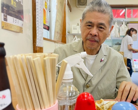 これは、ぎょうざがやってきて、割りばしをこれから全員に配ろうとしている、糸井さんの姿。