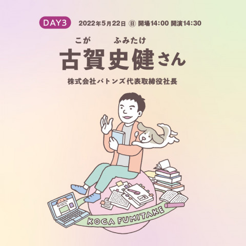 いよいよ明日!当日席も若干あるかも! いよいよ明日から3日間、小舟のトークライブ3DAYS 「たとえばこんな おもしろい働き方。」 @渋谷PARCO「ほぼ日曜日」 がはじまります。 当日キャンセル分など、若干数、当日席をご用意できるかもしれません。 その場合には 「ほぼ日曜日」のTwitter @hobo_nichiyobiで、告知と受付をおこないますので、もしあるなら行ってみたいかも‥‥! という方は、ぜひチェックしてみてくださいね。 「おもしろくはたらく」ことについて考えたとき、どんな方にゲストに来ていただけるだろう‥‥と考えてお呼びした、竹内順平さん、片山勝三さん、古賀史健さんの3人。 さまざまなジャンルでご活躍の、バラエティ豊かなみなさんに来ていただけて、私自身とてもうれしく、毎日たのしみな3日間です! 渋谷PARCO8階の「ほぼ日曜日」でおまちしております! 2022/05/19 22:31 |