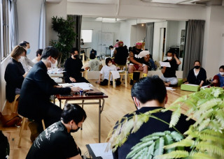立ち上がりを目撃 俳優さんがセリフを口にすれば、そこは即座に劇場になる――稽古場を見せていただく度に、そう思います。 「復讐が復讐を呼ぶ血の惨劇」 などと称されるシェイクスピアのローマ史劇 「タイタス・アンドロニカス」。 それを現代とつなぐ木村龍之介さんの 「シン・タイタス」の稽古場をのぞいてきました。 第1幕の読み合わせをしながら、木村さんと俳優さんたちは、この史劇を巡る意見を交換します。 古代ローマ帝国の市民は権力の移動をどう見たのか? 貴族の反応はどうだったのか? 当時の女性はどういった態度で気持ちを表したのか? どうしてこんなことが起きるのか? 「今」とつながる「罪」とは何か? お稽古ははじまったばかりで、まだ手探りにもかかわらず、俳優さんたちの声はどんどん熱を帯び、あっという間にそこが演劇空間になっていきます。 7月27日の開幕まで2ヶ月足らず。 ここから何が育っていくのか、先行きが本当に楽しみです。 2022/06/02 18:13 |