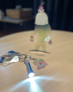 照らすたのしみ。 渋谷PARCOのほぼ日曜日で開催中の 「よるのえ展」にきました。 キューライスさんが夜の時間に 「意識を無にして」描いているという絵がずらりと展示されています。 一枚一枚、バラバラなようで、あの絵とこの絵はつながってる? あの夜とこの夜は? と感じさせられます。 入り口で借りるミニ懐中電灯で照らしながら、まんなかを照らすだけでなく、はじっこをじっくり照らしたり、ふだん、絵を見るときよりも、時間かけるおもしろさがあります。 絵の後に、キャプションを読むとそういうことか!とまた見たくなることも。 約100枚の原画、それぞれすごいので、時間に余裕を持ってお越しいただくことをオススメします。 そして、たのしいかわいいグッズコーナー。 中が見えない状態で売られているアクリルキーホルダーには、ミニ懐中電灯もついていて、かわいさと、実用、両方に役立ちます。 展示の絵をたくさん照らしてきたので、懐中電灯にも、愛着がわいちゃってます。 私が買ったものにはりんご飴さんが入っていたので、ミニ懐中電灯とともにさっそくキーホルダーに加えました。 かわいくて、不思議で、気に入ってます。 2022/06/03 15:22 |