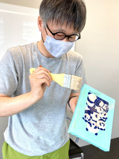 この1点1点に、サイン入れと、とくべつな仕上げをするために福田さんが徳島からはるばる来て、朝から制作をしてくださっています。