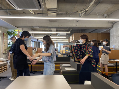ギネスに挑戦。 いろんな人がワイワイと、自由に仕事をしている本社の3Fスペース。 今日は「ほぼ日の學校」の新授業の案‥‥? かなにかで、 「ギネスに載る方法」について、みんなを集めて実践しはじめました。 やろうとしているテーマは 「1分間で何回ハイタッチできるか」。 くさおい曰く、 「背の高い人と背の低い人をうまく組み合わせて、二重に円を作るかたちで動き回れば、大量にハイタッチできるはず」 とのこと。 小柄な 「あ、ちがうちがう! ここはね、こうすればいけるんじゃないかと思うのよ」 と、自説の検証をしていました。 たぶんこのままでは授業にはならないのでは‥‥と思いますが、こういう 「誰かが思いついた謎の発想に、みんながとりあえず付き合ってくれる」 みたいな弊社のムード、けっこういいところだと思います。 2022/06/20 15:17 |