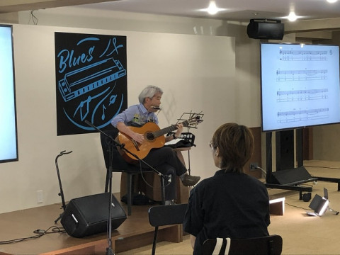 プロがハーモニカを吹くと ポケットに入る小さな小さなハーモニカ。 その可能性の果てしなさに打ちのめされました。 ほぼ日の學校 「松田幸一さんに習うゼロからのブルースハープ」 昼の部が先ほど終わりました。 触るのも初めてという方、すごく久しぶりという方、いろんな方がいらっしゃいました。 「はぁ、とため息をつくように」 「1人で楽しめばいいんだから厳密じゃなくていい」 「アバウトに、気楽に」 「その時の気分で調子を上げていく」 ゆったりとした松田さんのガイドに従って、少しずつ吹いたり吸ったりするうち、なんとか「聖者の行進」が形になりました。 松田さんがギター伴奏をつけてくださると、なんだかいっぱしの演奏ができたような気持ちになれます。 とはいえ、ブルースになってくると険しい山の気配も漂います。 吸う息をコントロールして音を下げる技を使うと、ブルースっぽい音、blue noteになるのだそうですが、そう簡単にはできません。 松田さんのお手本をため息をつきながら聴くだけでした。 そして最後は、松田さんによるミニコンサート。 これがまた贅沢な30分間でした。 この授業がアプリ配信になるときは、みなさんぜひお手元にブルースハープを用意してどうぞご一緒に吹いてみてください。 新しい世界が開けますよ。 2022/07/05 17:03 |
