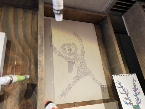 鈴木さんの個展。 ほぼ日手帳ユーザーの鈴木さん。 というのは、俳優の鈴木杏さんのことです。 現在、代官山ではじめての個展 「この世界、すべてがキャンバスー鈴木杏のアトリエ展」が開催されています。 手帳はたぶんもう10年くらい使ってくださっていて、数年前に、ほぼ日手帳ガイドブックの取材でうかがったときは、まだ絵を描き始めた頃だったような。 そこから描き続けて、どんどん生み出し、最近はもう立体物までも生み出し、生み出しまくっているのでした。 そのみなぎるパワー、かっこいいぞーー! 手帳の一部も、たくさん展示されていました! 原画やグッズも販売されていますし、どんなものが描かれているのかなー? と見るのもたのしいですよ。 杏さんのパワーをキャッチしにぜひ足を運んでくださいー。 ご本人も会期中は、現場で絵の製作をしたりもするそうです。 そうそう、遊びに来た人も、絵を描くこともできるそうですよ。 お子さん連れの方にも、おすすめ! 夏休みのお子さんも、安心して涼しく遊べるかと! わたしも、今度連れてまた遊びにいこうと思います。 初個展、おめでとう! ====================goen° 「この世界、すべてがキャンバスー鈴木杏のアトリエ展」 東京都渋谷区猿楽町4-6 代官山宝ビル1F 12:00〜19:00(祝休日:11:00〜19:00) (月曜日定休) 2022/07/28 16:28 |