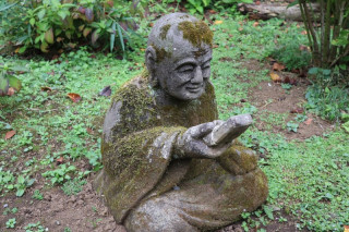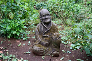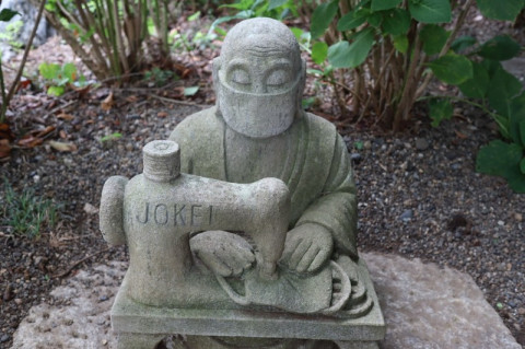 「今」を捉えた羅漢像 眺めるだけで楽しいユルかわ神様「たのかん」を語る 宮田珠己さんのお話に誘われて、東京近郊で会えるユルかわ神様はいないものかと探してみました。 すると、愉快な羅漢像が川崎にあることを知り、 羅漢とは最高位の修行に達した聖者だそうです。 場所は川崎市麻生区の浄慶寺。 江戸初期に創建されたお寺です。 花や緑が美しく、 「あじさい寺」とも呼ばれるそうです。 小田急線の柿生駅から10分足らず。 入り口からびっくりしました。 マスクをして、マスクを縫う羅漢さんがいます。 お次はワクチン羅漢さん。 なんと時事的な! さらに進むと、こんどはリモートワーク羅漢さん。 折りたたみ携帯を触る羅漢さんもいます。 苔むした携帯羅漢さんを見ていると、この石像を100年、200年先に見る人は、羅漢さんが何を手にしているのか、わかるのかなあと思ってしまいました。 パソコンだって、遠からずウエアラブルになったり、体の一部になったりして、まったく違う形になるでしょう。 そう思うと、 「iPod羅漢」を見る10年後の子供は、イヤフォンからのびる「ひも」は何? と思うのかもしれません。 今の眼で見ても、未来の眼で見ても、おもしろい羅漢像でした。 2022/08/30 16:55 |