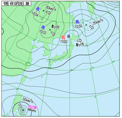 天気図がパンダ! きのう10月28日は、上野動物園にジャイアントパンダのカンカンとランランがやってきて50周年の記念日だったそうです。 というニュースのあとで天気予報コーナーに。 すると、アナウンサーが、 「天気図がパンダですね」。 え? なに? 天気図がパンダ? そう思って画面を見ると、たしかに見えます! (この天気図は気象庁のHPで見ることができます) ほぼ日の學校での 気象専門家・古川武彦さんの授業の準備をしながら、ずっと天気のことを考えていると、こういうニュースに自然と耳が向くようになります。 晴れたとか雨が降るとか、そのくらいしか天気に関して興味をもったことがありませんでしたが、古川さんの著書を読んでいると、 「雨粒の形ってこうだったのか!」など発見がたくさんあって勉強になりました。 11月3日、文化の日、ほぼ日の學校では午前に古川さん、午後にクジラの田島木綿子さんの授業を公開収録します。 昼休みには神保町古本まつりも散策できます。 「サイエンスな文化の日」いかがですか? 2022/10/29 07:49 |
